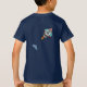 Kids Outer Space T-Shirt features Countdown and blast off text. An astronaut with fingers with fingers held up in peace sign is cradled in a crescent moon. Below is a place to add a name. At the bottom, a rocket ship speeds across the shirt, leaving a puff of smoke. The (optional) back design shows a rocket ship taking off, leaving a cloud of smoke. It is certain to delight the little astronaut in your life.