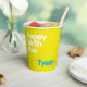 Brighten up your child’s celebration with this Happy Birthday paper cup featuring a fun, minimalist yellow design — perfect for boys or girls! With clean modern typography and space to personalize with your child's name, this paper cup is ideal for serving drinks or party treats at kids' birthdays, school parties, or colorful themed events.