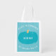 Food Allergy Awareness Teal Pumpkin Kids Personalized Treat Bag For Halloween. Light blue background, teal pumpkin. Food allergy aware teal pumpkin for non food treats. Personalize with name in center or leave blank for no name. Design on both sides. Edit text to change: Food allergies, no sweets for me.