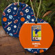 This fun kids sports equipment pattern has soccer balls, footballs, baseballs, volleyballs, hockey sticks and pucks, and baseball bats. The athletic gear is on a background of dark blue. On top in orange, add a photo and text for a personalized touch! This Christmas tree ornament adds a great custom touch to your holiday celebrations!