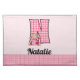 Our cute pink Bear with the letter "N" monogram is done in pink gingham checked prints and personalized with your child's name. Give your child a placemat of their own and you may find them running to the dinner table when you call them!