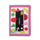 Fun colorful element shapes in red balloon, gold crown, birthday party hat, watermelon and more. Name in white against the look of black chalkboard outlined in sky blue. Kids wallet for pretend money and cards or photos, or to bring their lunch money or check to school cafeteria (our child loved doing that and helps teach some responsibility). Original Design by TamiraZDesigns.