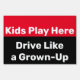 Kids Play Here Drive Like a GrownUp Traffic Safety Sign