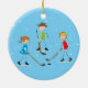 Kids playing hockey Christmas ornament. Hockey kids playing pond hockey