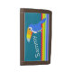 Bold kids graphic toucan rainbow art wallet for kids customize with your own choice of name. This example reads Sammy. Cute bright colorful wallet or purse for kids that love rainbow and birds. Unique graphic art and designed by Sarah Trett.