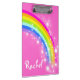Rainbow colorful graphic kids girls clipboard. Customise with your name. Currently reads Rachel. Uniquely designed by Sarah Trett.
