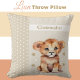 This brown and white pillow has polka dots, stars and a cute lion, which you can personalize with a name.