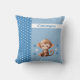 This blue and white pillow has polka dots, stars and a cute monkey, which you can personalize with a name.