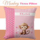 This pink and white pillow has polka dots, stars and a cute monkey, which you can personalize with a name.