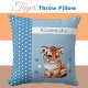 This blue and white pillow has polka dots, stars and a cute tiger, which you can personalize with a name.