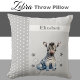 This grey and white pillow has polka dots, stars and a cute zebra, which you can personalize with a name.