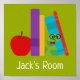 Kid's room customizable name poster with a cute illustration or bookworm with apple illustrations against a customized gray background. The text can be customized to suit your needs. Suitable for a poster for a children's room.