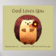 Kids Room Scripture, God Loves You Cute Hedgehog Poster