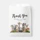 Safari themed kids birthday favor bags featuring vibrant watercolor zoo animals, including noble lions, graceful giraffes, and mischievous monkeys, and a personalized template for you to add a message.