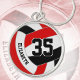 This volleyball themed metal keychain features the realistic image a red, black and white volleyball, upon which you can customize the player's name & jersey number in a varsity letter style font - by katz_d_zynes