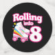 This skate party design is perfect for a roller skating party or birthday theme for an 8 year old. If the birthday girl or birthday boy loves to roller skate, they will LOVE this skate party design! Features retro style "Rolling into 8" birthday quote with cool roller skate graphic with rainbows & stars that's fun & unique. Fun roller skate party design for an 8th birthday!