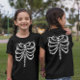 Spook it up with this awesome kids’ skeleton Halloween tee! Printed on a classic black shirt, it features detailed bones (collar, ribs, and spine) with creepy-cool spider webs woven between. The design appears on both the front and back for a full spooky effect! Perfect for little ghouls who want an easy, comfy costume—or to match with the whole family for Halloween parties, trick-or-treating, and photos.