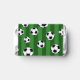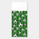 This fun kids sports equipment pattern has soccer balls on a green field striped background. The athletic gear design makes a cute addition to a birthday, Christmas, or other holiday party, especially for soccer-loving boys and girls.