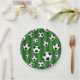 Kids Soccer Ball Pattern on Green Stripes Birthday Paper Plates