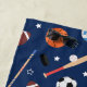 This fun kids sports equipment pattern has soccer balls, footballs, baseballs, volleyballs, hockey sticks and pucks, and baseball bats. The athletic gear has a background of dark blue. It makes a great addition to a pool or beach trip of a little boy or girl. It also makes a cute birthday, Christmas, or other holiday gift.