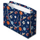 This fun kids sports equipment pattern has soccer balls, footballs, baseballs, volleyballs, hockey sticks and pucks, and baseball bats. The athletic gear has a background of dark blue. It makes a great addition to a little boy or girl party or celebration. It also makes a cute addition to a birthday, Christmas, or other holiday gift.