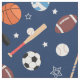 This fun kids sports equipment pattern has soccer balls, footballs, baseballs, volleyballs, hockey sticks and pucks, and baseball bats. The athletic gear has a background of dark blue. It makes a great addition to the bedroom or nursery of a little boy or girl. It also makes a cute birthday, Christmas, or other holiday homemade craft gift.
