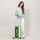 Cute Kid's suitcase with dinosaurs | Custom luggage. Fun pre histroic animal design for children. Add your own name, surname, family name, monogram initial letters, funny quote etc. Available as small carry on for cabin and medium or large size. Custom tourist accessories for 1st summer trips and vacation time. Cool novelty gift idea for friends and family. Nice Birthday gift idea for boy, son, grandson, nephew, cousin, grandchild etc. Personalizable background color. Green T-rex Tyrannosaurus pattern.