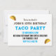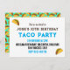 Having your Kids Taco Night Birthday Party Invitation match the theme of your party is a great detail that your guests will appreciate. The thoughtfulness of a consistent party theme is often appreciated and can show your guests that you can host a cohesive event.