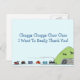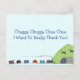 This design features a simple pen sketch of a steam train heading towards a tunnel. A tank car, passenger car, coal car and caboose follow along. A couple horses graze on the green hill. The text reads "Chugga Chugga Choo Choo I Want To Really Thank You!" Personalize with your own text if you wish. These postcards are great for kids stationery or thank you's after a birthday.