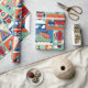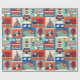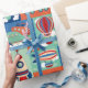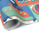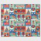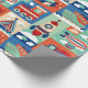 A Colorful And Bright Kids Travel Birthday Wrapping Paper Designed With, Boats, Trains, Trucks, And Rockets