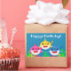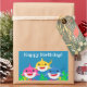 Celebrate your little shark's birthday! Personalized this sticker for any of your party needs or to label any kid items for school. Features a yellow, pink, and blue shark with colorful background. Great for any Under the Sea parties or shark parties. Graphics by Mujka.