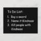 To Do List: 1. Buy a sword 2. Name it Kindness 3. Kill people with Kindness