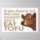 IF YOU HAD TO KILL THE COW YOURSELF, YOU'D EAT TOFU. If you're one of many people for the ethical treatment of animals, you'll love this design that advocates for people to consider how inhumane the animal killing process is. If your diet does not include eating beef, whether you're a vegetarian, vegan, herbivore or other, speak your beliefs with this simple cow graphic and plain and simple words.
