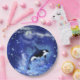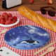 Killer Whale on Full Moon - Art Drawing - Blue Paper Plates