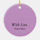 Lightweight, smooth, pure white ornament with nice sheen. Perfect size to be seen from across the room ... and to attract closer inspection! Price was great for ordering enough for the whole family! Clear, bold black design just as requested. Matches the order exactly. Just so nice!