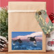 A herd of orca killer whales swimming in the Arctic Ocean. Icebergs floating in the sea and by the sunrise shimmering the clouds pink. Customize to personalized the gift product!