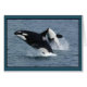 Two killer whales (Orcinus orca) playing & breaching in the beautiful blue ocean, black border with sea blue backgroud. Killer whales are part of the oceanic dolphin famiy andnot true whales. Intelligent and curious, they often amuse themselves diving & surfacing near tourist boats, to the delight of onlookers. Black and white markings are slightly different for each animal. They communicate with whalesong which can be complex. Orca travel in pods and family groups. They often migrate vast distances, and are found in ocean waters from tropical to arctic. In animal spirituality Orca or Killer Whale represents journeying, family, intelligence, freedom, hidden depths. Send this lovely image to nature lovers, friends of the environment, lovers of ocean & sea wildlife. Available semi-gloss (shown) or matte, note card style standard (shown) or large size. Have a happy day!