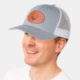Custom Leather Patch Hat, Sytle: Adult Retro Trucker Cap, Color: Heather / Black, Shape: Circle