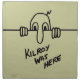 During WWII, Kilroy became the US super-GI who always got there first—wherever GI’s went. It became a challenge to place the logo in the most unlikely places.