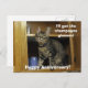 This anniversary postcard says, "I'll get the champagne glasses! Happy Anniversary." This postcard shows a photograph of a young Siberian cat named Kimber. Kimber is being naughty by sitting in the cupboard with the clean glasses. He's looking directly at you with a smile on his adorable face. A darling cat and anniversary postcard for every cat lover.