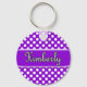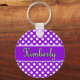 Cute keychain in small white dots pattern on purple background with Kimberly name printed on it.