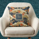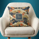 Kimono Style Floral Japanese Print with Monogram Throw Pillow