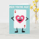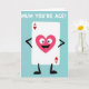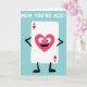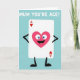 This card features a white, rounded rectangle character inspired by a classic playing piece, standing with simple black arms and legs as if confidently stepping forward on a calm blue‑green background. In the top-left and bottom-right corners of the rectangle, small red hearts sit beside a capital “A,” hinting at a high-ranking symbol of affection. Centered on the rectangle is a large pink heart with wide sky‑blue eyes and a big open smile, like it’s gazing at someone it adores ❤️. The heart’s cheerful expression and slightly lifted posture suggest a friendly, flirty energy, as if it’s sharing a sweet inside joke. Near the top of the design, a short compliment appears in bold white lettering, floating above the character for easy reading. A few tiny accent marks around the smiling heart add extra sparkle, giving the scene a light, celebratory feel 🌼. The clean shapes and flat colors keep the focus on the bright pink heart and the red corner icons against the soft blue‑green field. The white rectangle’s corners are gently rounded, with the red heart‑and‑“A” marks clearly placed at opposite corners.