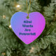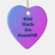 Kind Words is all about the inspirational message it is sending! This ornament is done in a simple design having the inspiration against a vibrant background! The lettering is done in blue! Perfect for positive encouragement; makes a sensational item for a gift!