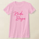 My overall review is that the T-shirt is nice, it fits true to size however the font is significantly smaller than advertised and you can't read it. The printing is unreadable and there is a strain to read it. It does not look like the advertised product. Maybe the shirt color is darker or a larger more visible font should have been used. Photos with and without flash and font is barely legible.