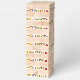 This adorable, personalized elementary school Topple Tower game features 10 colorful geometric shapes on one side, numbers from 0 to 9, and alphabet letters on the other side. Cute custom kindergarten gift personalized with your school and teacher name, or your child's name.