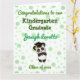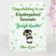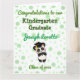 Cute adorable and modern congratulation card for kindergarten graduates. The design features a cute green blue dinosaur T-Rex with a dot/polka background the template is customizable with graduate name, year class,personal title. Perfect for kids/ grandson/ son kindergarten graduation, specially if the kids loves animals and particularly reptiles dinosaurs and T-Rex, they will love it!