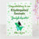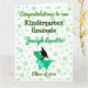 Cute adorable and modern congratulation card for kindergarten graduates. The design features a cute green blue dinosaur T-Rex with a dot/polka background the template is customizable with graduate name, year class,personal title. Perfect for kids/ grandson/ son kindergarten graduation, specially if the kids loves animals and particularly reptiles dinosaurs and T-Rex, they will love it!