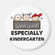 Three little stick figure kids hold a writing board that reads "School is Cool!" and black text reads "Especially Kindergarten" on these cute stick figure Kindergarten T-shirts, mousepads, school tote bags, buttons, stickers, cards, and more, perfect for both kindergarten students and kindergarten teachers!