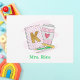 Brighten up any teacher’s desk with these stylish kindergarten teacher notecards. Featuring a pink notebook with white polka dots, a bold gold “K,” and classroom essentials—a coffee cup with a heart, pen, pencil, and ruler—this preppy design is perfect for thank-you notes, parent communication, or everyday stationery. A thoughtful back-to-school or teacher appreciation gift that’s both fun and functional!